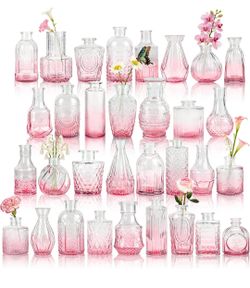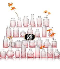 Arme Bud Vase Set of 32, Pink Vases in Bulk Bud Vase for Flower Small Glass Vases for Wedding Centerpieces, Vintage Cute Mini Flower Vase, Home Table $25Buffalo Grove, IL