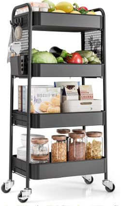 TOOLF 4 Tier Rolling Cart with Pegboard, Metal Storage Organizer Cart with Wheels, Hooks & Bins Esthetician Craft Art Sturdy Storage for Bathroom, Kit$35Palatine, IL