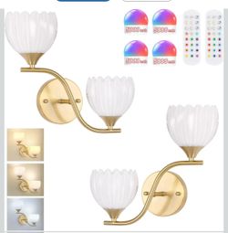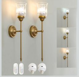 Battery Operated Wall Sconce, 2-Lights Vinatge Brass Wall Lighting with White Tluip Shade Rechargeable Bulb with Remote for Living Room, Bedroom,Symme$49Buffalo Grove, IL