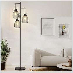 Dimmable Floor Lamp, 3 x 800LM LED Edison Bulbs Included, Farmhouse Industrial Floor Lamp Standing Tree Lamp with Elegant Teardrop Cage Tall Lamps for$45Prairie View, IL