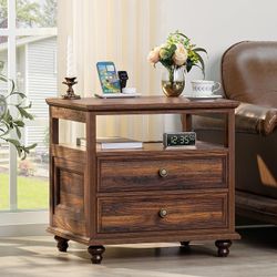 Farmhouse Nightstand with Charging Station, 24" Wide End Table with 2 Drawers$45Montclair, CA