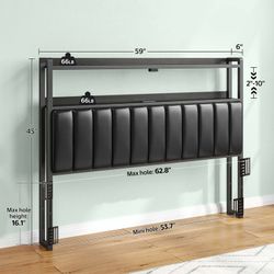 Queen Size Adjustable Storage Headboard - Modern Black Upholstered Bed Frame with LED Lights, Charging Station & Soft Padding,$60Montclair, CA