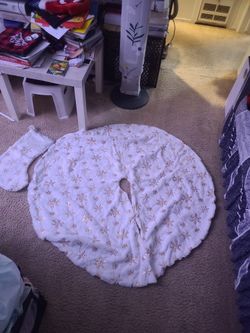 48 Inch Christmas Tree Skirt With Gold Snowflakes Plus Boot - New$25Monterey Park, CA