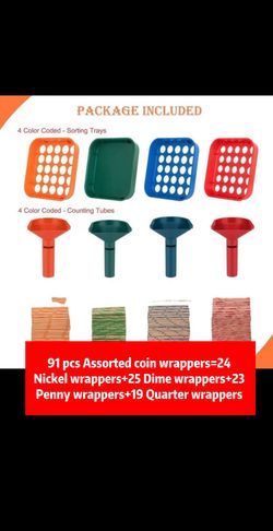 4 Color-Coded Coin Sorting Trays & 4 Sorters with 91 Assorted Flat Coin Wrappers - ABA Standard Coin Organizer for US Currency, Red, Blue, Green, Ora$22Brooklyn, NY