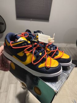 Women Nike Dunk Low Off-White University Gold Midnight Navy Size 7.5$120Irwindale, CA