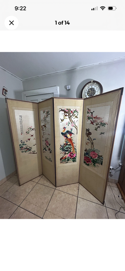 Vintage 4-panel room divider privacy screen w/ silk embroidered birds & flowers$400Tampa, FL