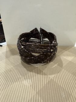 Chic Brown Beaded Multi-Strand Cuff Bracelet - Wide Woven Wire Bangle with Pearl Accents$15Staten Island, NY