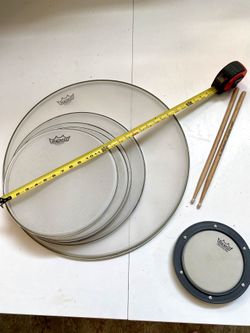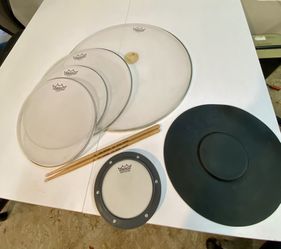 Complete Set Of Remo Silentstroke Mesh Practice Drum Heads 12 13 16 22” And Rubber 14” Snare Pad Small Practice Pad Sticks $65 Cash In Ontario 91762$65Montclair, CA