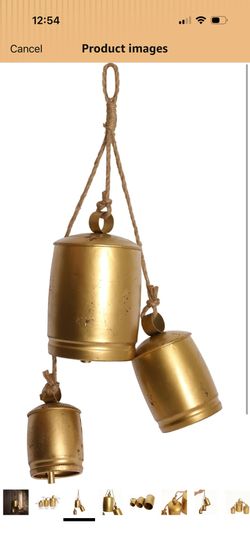 Vintage Gold Metal Cow Bells Set of 3 Handcrafted Hanging Bells with Jute Rope Rustic Farmhouse Distressed Bells for Porch Wreaths Walls & Year-Round $25Palos Park, IL