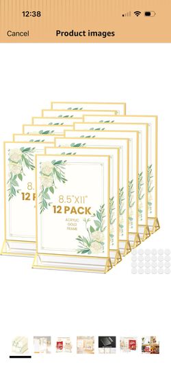 Acrylic Sign Holder 8.5x11 Gold Frames Double-Sided Gold Picture Frames for Flyer Menu Wedding Table Number Christmas Photo Frame with Glue Dots - 12 $40Palos Park, IL