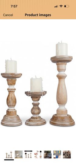 Mela Artisans Wooden Pillar Candle Holders | Tuli Design | Set of 3 Mango Wood Candlesticks | Whitewash | Sizes 6" & 9" & 12" | Decorative Centerpiece$30Palos Park, IL