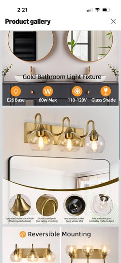 Bathroom Light Fixtures, 3-Light Brushed Gold Vanity Light Over Mirror, Modern Wall Sconces 21" with Clear Glass Globe Shade, Bathroom Wall Lights for$35Palos Park, IL