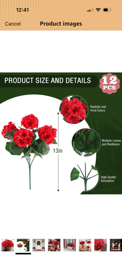 Hananona 12 Pcs Artificial Geranium Flowers for Outdoors Geranium Silk Red Flowers Outdoor UV Resistant Garden Plants Faux Flower for Christmas Home K$25Palos Hills, IL