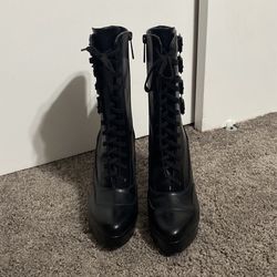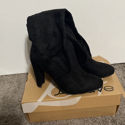 Pink Kiss Black Suede Square Toe Boots Size 8$50Chino, CA