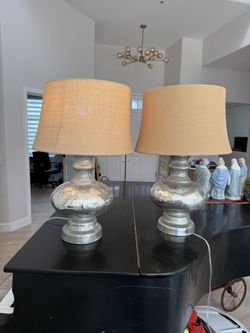 Hammered Silver Lamps With Burlap Linen Lampshade$80San Diego, CA