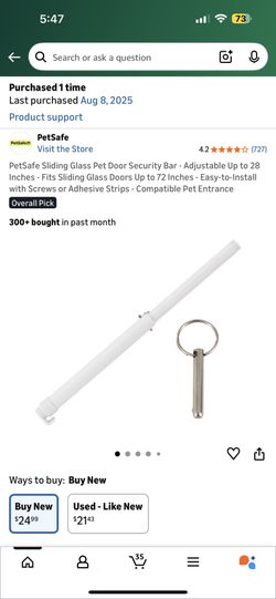 PetSafe Sliding Glass Pet Door Security Bar – Brand New$17Aloha, OR