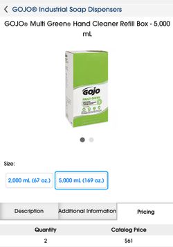 GOJO® Multi Green® Hand Cleaner Refill Box - 5,000 mL$30Mesa, AZ