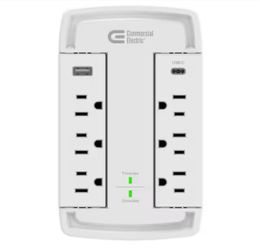 6-Outlet Wall Mounted Swivel Surge Protector with 1 USB-A and 1 USB-C, White$19San Diego, CA
