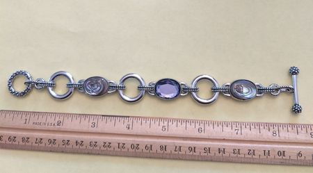Lia Sophia Silver Tone Link Bracelet Purple Rhinestone And Abalone Accents $5Oregon City, OR
