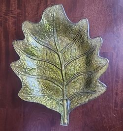 Metallic Green Glass Leaf Platter Dish Tray Fall Harvest$12Corpus Christi, TX