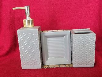 Grey Ceramic Bathroom Set with Soap Dispenser, Dish & Toothbrush Holder$10Corpus Christi, TX