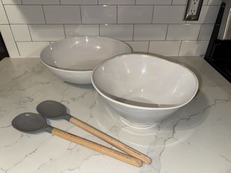 Crate & barrel 2 serving bowl and 2 grey Silicone and Wood Spoon$15Saratoga, CA