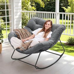 Outdoor Papasan Rocking Chair, 450 lbs Oversized Comfy Patio Chair with Thickened Cushion, Indoor $88Ontario, CA