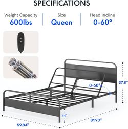 Queen Size Platform Bed Frame with Headboard and Footboard, Adjustable Head Tilt, Modern Design, No Box Spring Needed, Under Bed Storage, No Noise, Ea$150Ontario, CA
