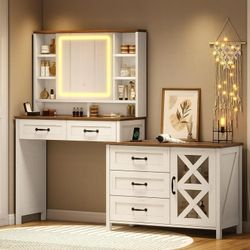 Farmhouse Vanity Desk with Lights & Power Strip Drawers Cabinets Brown$150Ontario, CA