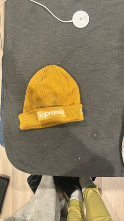 Supreme x New Era Box Logo Beanie in the "Mustard" or "Light Mustard" colorway. $45Brentwood, CA