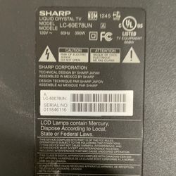 SHARP LC-60E78UN Liquid Crystal TV$100Buffalo Grove, IL