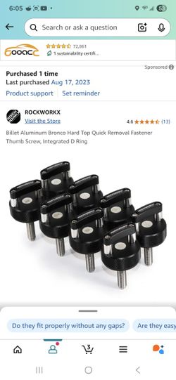 Billet Aluminum Bronco Hard Top Quick Removal Fastener Thumb Screw, Integrated D Ring$45Las Vegas, NV