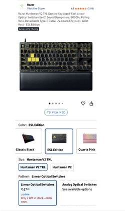 Razer Huntsman V2 TKL Gaming Keyboard: Fast Linear Optical Switches Gen2, Sound Dampeners$60El Cajon, CA