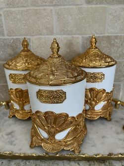 GLASS CANISTER WITH GOLD DESIGN$50Beaverton, OR