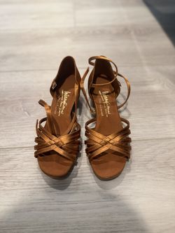 International Dance Shoes Girls Flavia Ballroom Heels Size 3 Wide Tan Satin$90Corona, CA
