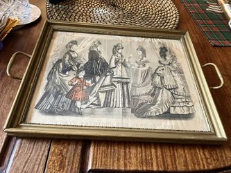 Antique Godey’s Fashion Print May 1870 Victorian Gilt Frame Handled Tea Tray$50Arcadia, CA