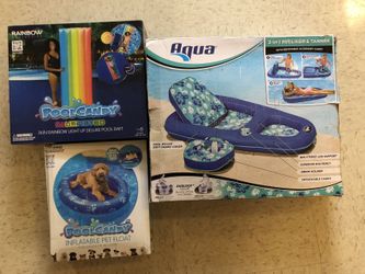 All Summer Swimming Pool Inflatables 1.Aqua 2-in-1 Recliner and Tanner 2.74 Inches Rainbow PoolCandy Illuminated Deluxe Raft 3.PoolCandy pet Float 4.$50Arcadia, CA