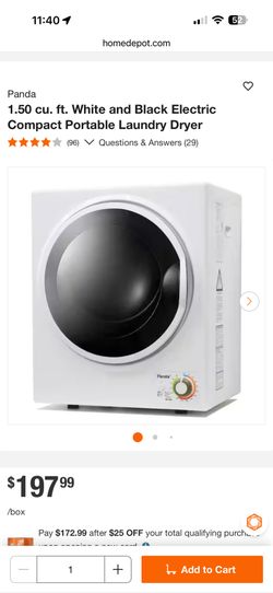 Panda 1.50 cu. ft. White Electric Compact Portable Laundry Dryer$80Monterey Park, CA