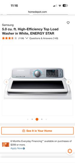 Samsung 5.0 cu. ft. High-Efficiency Top Load Washer in White, ENERGY STAR$120Rosemead, CA