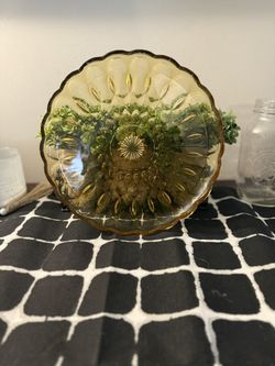 Vintage Amber Cut Glass 10" Round Scalloped Rim Optic Sunburst Serving Platter$12Hiram, GA