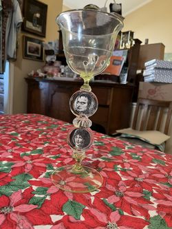 Emperor Napolean I and Empress Josephine Medallion Green Glass Drinking Goblet $125Simi Valley, CA