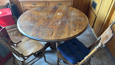 Solid Oak Round Table & 4 Chairs Plus Leaf Extension $100Los Angeles, CA
