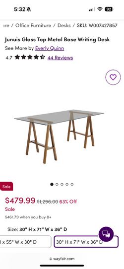 Junuis Glass Top Metal Base Writting Desk$400Los Angeles, CA