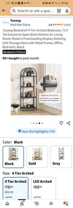 Yusong Bookshelf 4 Tier Arched Bookcase$60Tamarac, FL