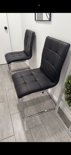 SET TWO LEATHER BLACK CHAIRS SILVER TRIM & SILVER TRIM w BLACK TABLE NEW STILL MOVING! Yarbrough$299El Paso, TX
