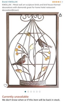 KWOLLAK - Metal wall art sculpture birds and bird house themed decorations with diamonds great for home hotel restaurant decoration(Brown) $35Parma Heights, OH
