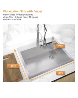 27 in. Drop-In Single Bowl 18-Gauge Stainless Steel Workstation Kitchen Sink with Waterfall and Spring Neck Faucet$89North Las Vegas, NV