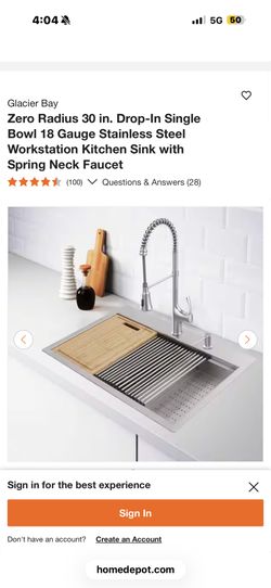 Zero Radius 30 in. Drop-In Single Bowl 18 Gauge Stainless Steel Workstation Kitchen Sink with Spring Neck Faucet$125North Las Vegas, NV