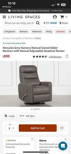 Hercules Grey Swivel Glider Recliner$300Upland, CA
