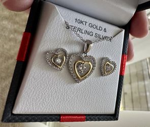 18" 10KT Gold & Sterling Silver Heart Chain and Earring Set $400Manteca, CA